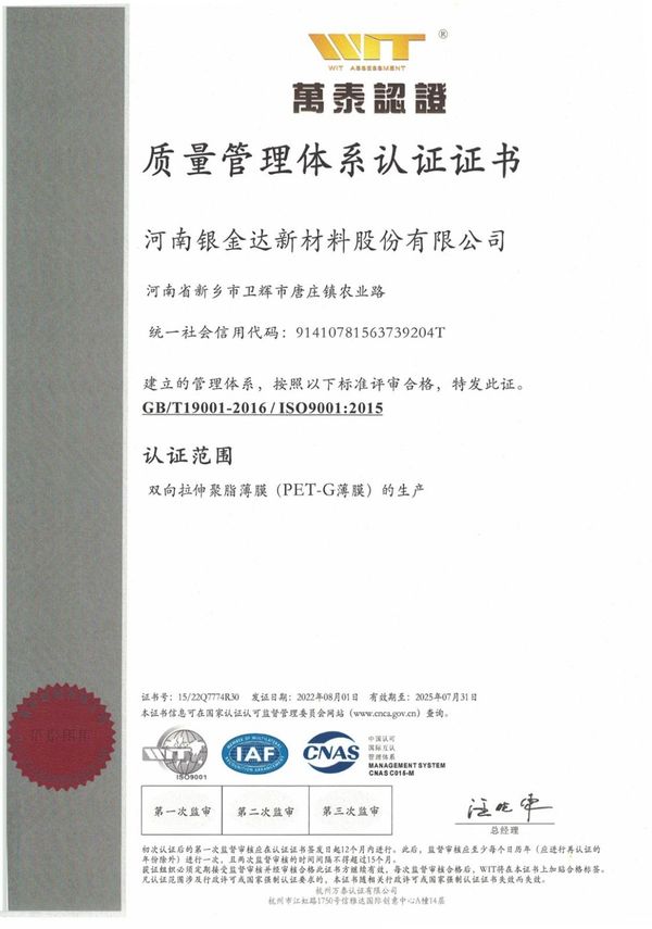 質(zhì)量管理體系認(rèn)證證書(shū)