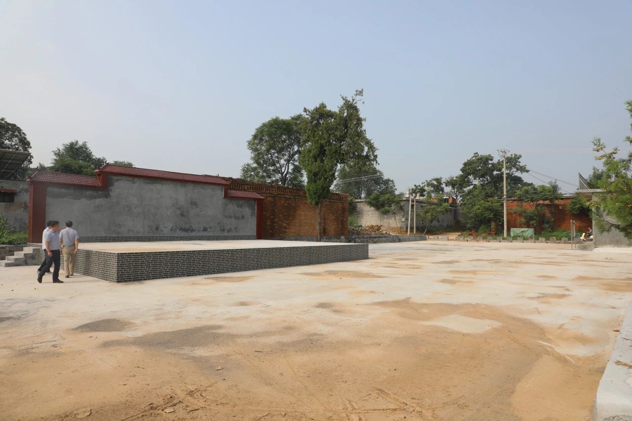 在王二莊村文化墻和文化活動廣場,楊鳳瑞一行仔細查看了項目建設情況,已建成文化廣場面積662平方米,文化墻立體面積45平方米,楊鳳瑞對項目建設質量表示滿意,并對兩個場地的后續(xù)建設方案進行討論,經現(xiàn)場測量,確定了文化墻和廣場背景墻的宣傳設計規(guī)劃。
