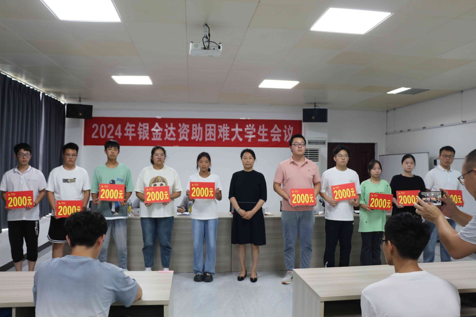 銀金達集團黨委書記、董事長閆銀鳳親自為各位困難大學生發(fā)放資助金。