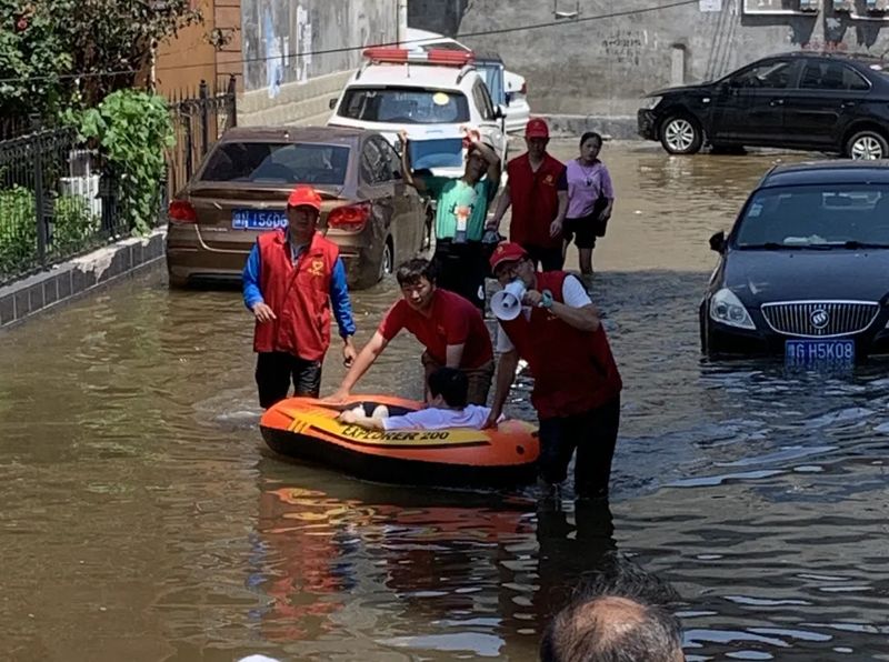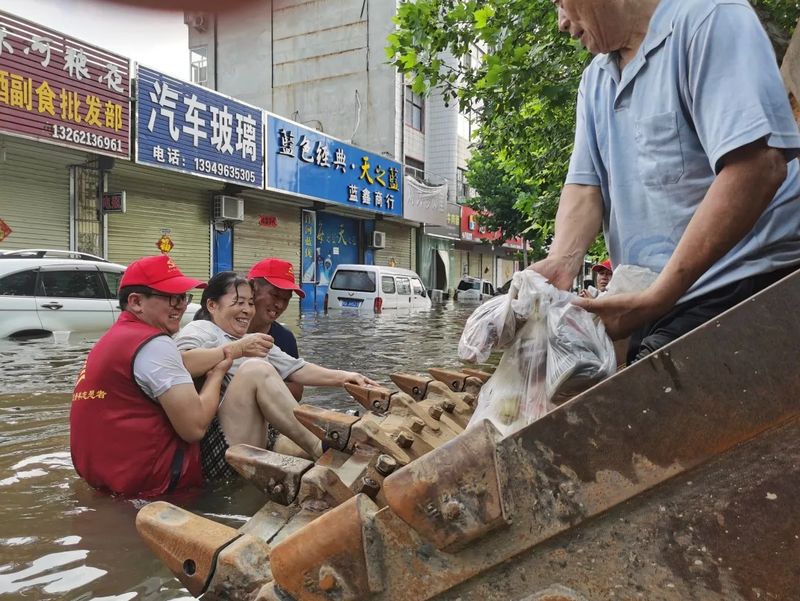 創(chuàng)新中心(新鄉(xiāng)市高新區(qū))黃曉謹(jǐn)(創(chuàng)新中心黨支部書(shū)記、集團(tuán)副總裁)領(lǐng)隊(duì)帶領(lǐng)創(chuàng)新中心19人自救搶險(xiǎn);